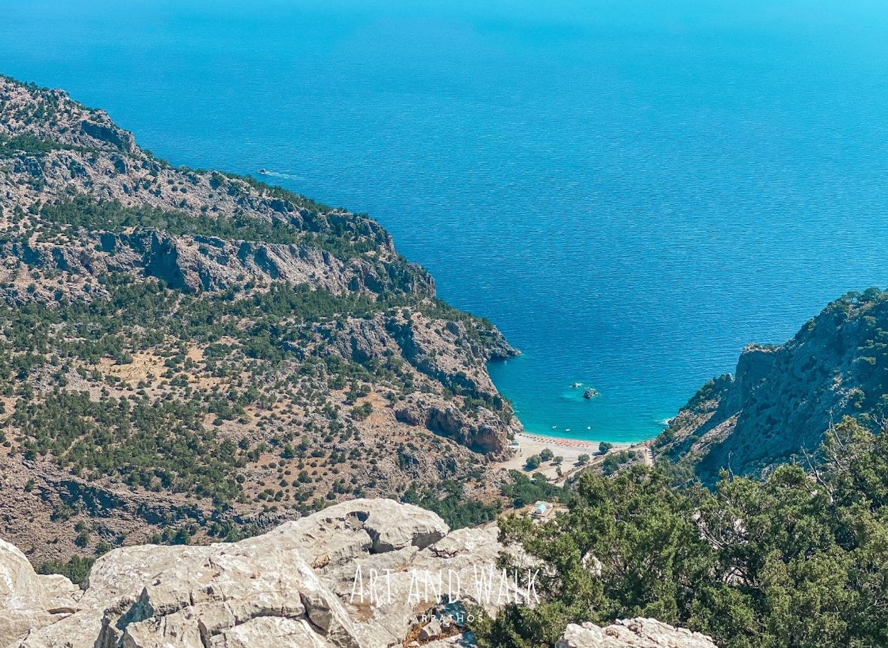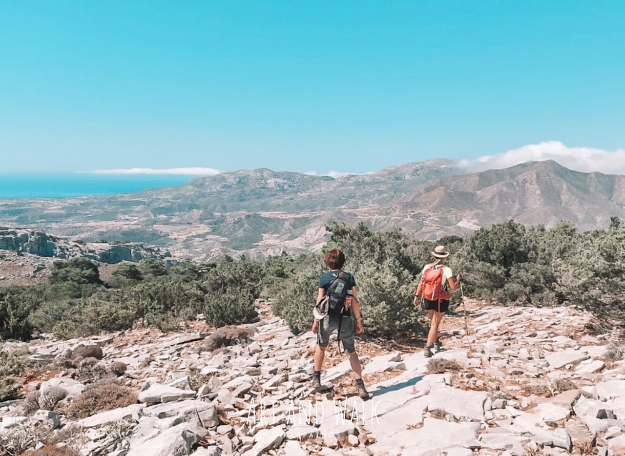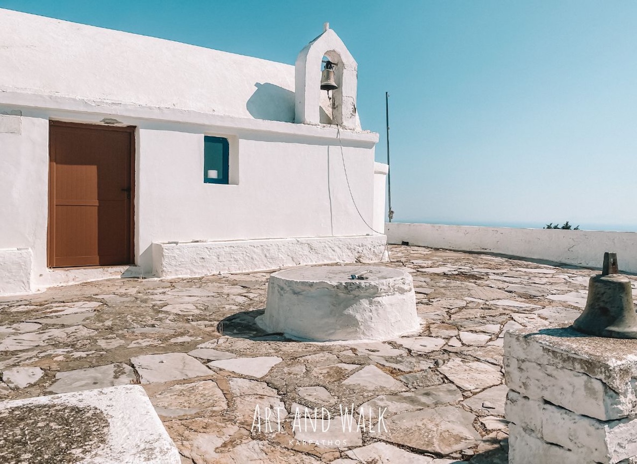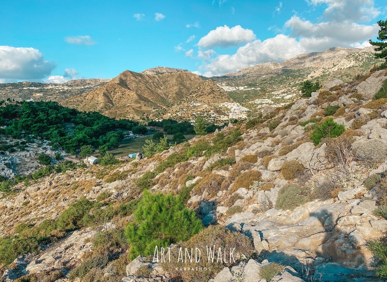 After about an hour’s steady climb, we’ll reach the charming Profitis Ilias church—perched at the summit and offering breathtaking panoramic views. Gaze out over the sparkling turquoise waters of Achata beach and spot the villages of Menetes, Pigadia, Othos, Volada, and Aperi, each nestled into the landscape below.