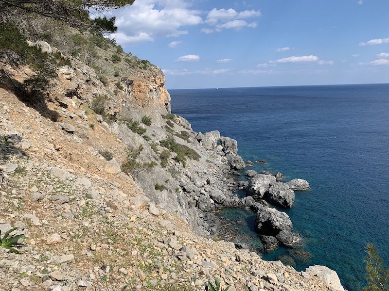 This hike starts just before Aperi, near the exit to Achata beach. This hike goes to the edge of the Vronti mountain. The sea unfolds right next to us as we hike our way towards Pigadia through the forest. The trail takes us both upwards and downwards and a trained eye is required to follow the somewhat overgrown trail. Fantastic gorges in the mountain show how a river once formed this landscape on its way down to the sea. At the end of our hike we find a church that we’ll visit followed by an old harbor, hidden at the end on Vronti beach. We hike back to Pigadia and can look back on our adventurous journey.